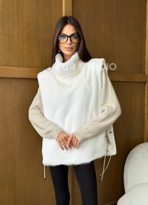 Белая норковая манишка 102741