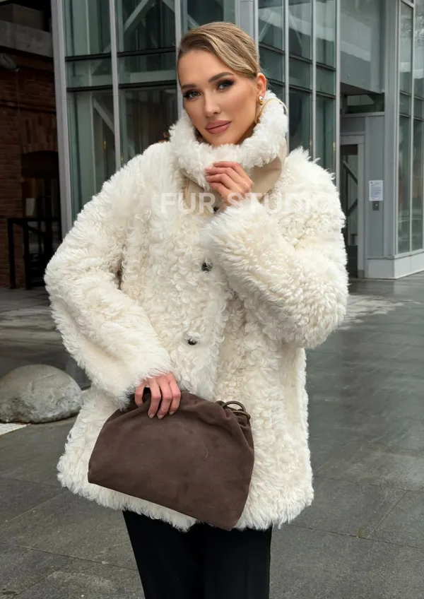 Белая шубка из тиградо. Модель предлагается в размерах от 42 до 48. Оптимальная длина моделей 70-75 см подчеркивает линии вашей фигуры. Эта дубленка станет неотъемлемой частью гардероба для тех, кто предпочитает роскошь и утонченность натуральной кожи.