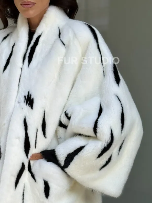 Белый норковый полушубок с рисунком доступна для покупки в нашем шоуруме Furs Studio в . У нас так же есть доставка во все города России. Добавьте немного роскоши в свой гардероб с этой шубой, которая будет служить вам многие годы.