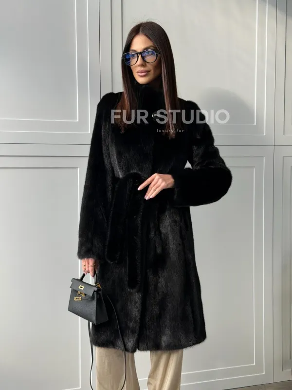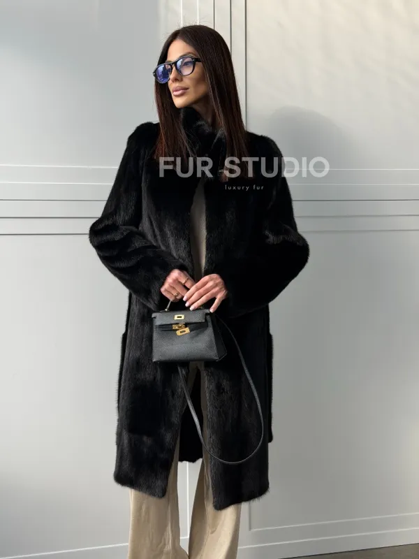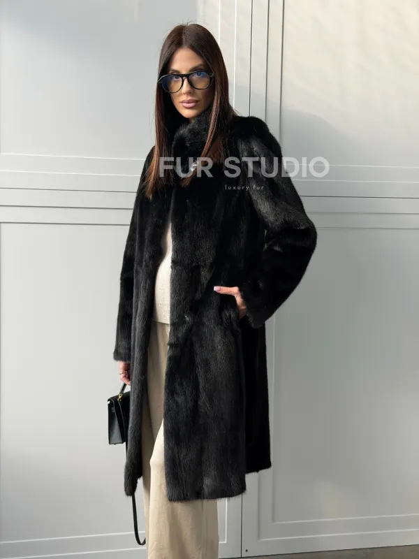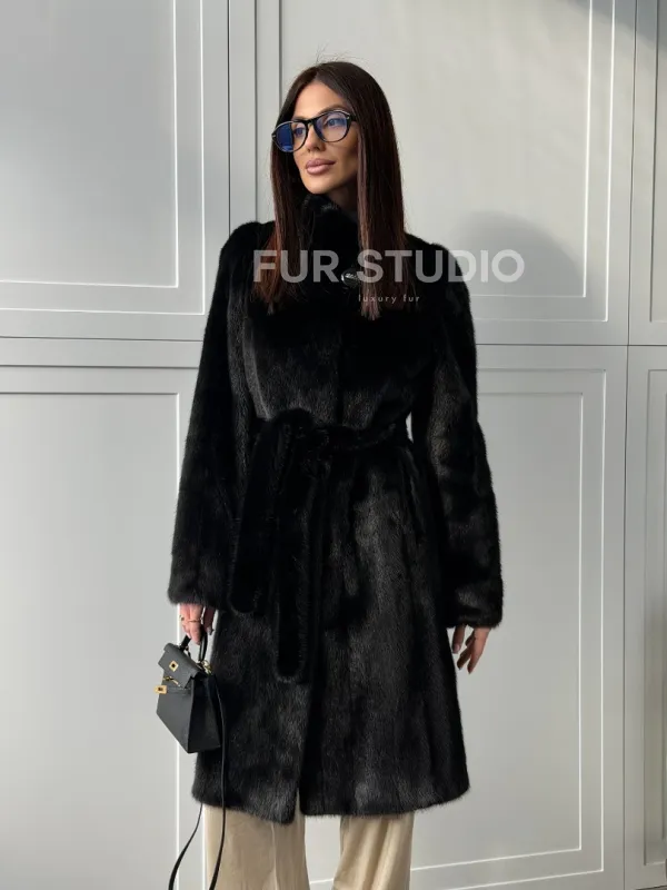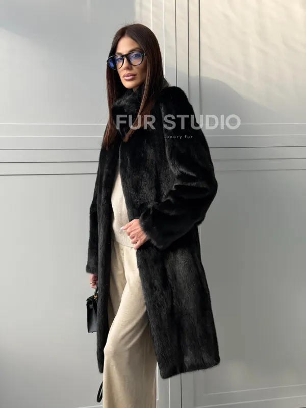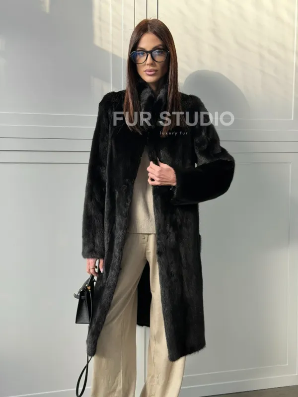 Черная норковая шуба - воротник стойка доступна для покупки в нашем шоуруме Furs Studio в . У нас так же есть доставка во все города России. Добавьте немного роскоши в свой гардероб с этой шубой, которая будет служить вам многие годы.