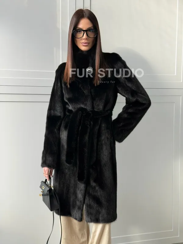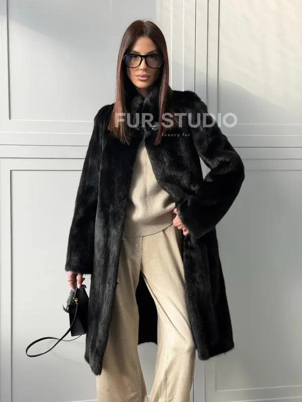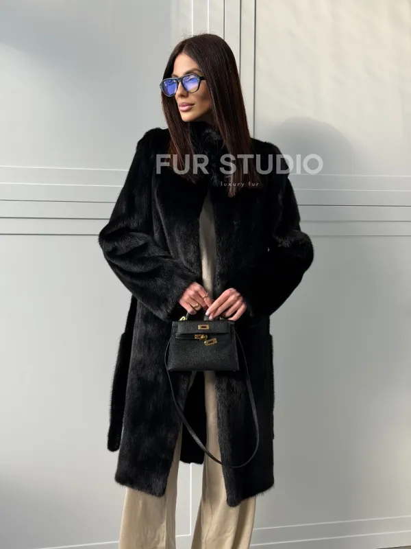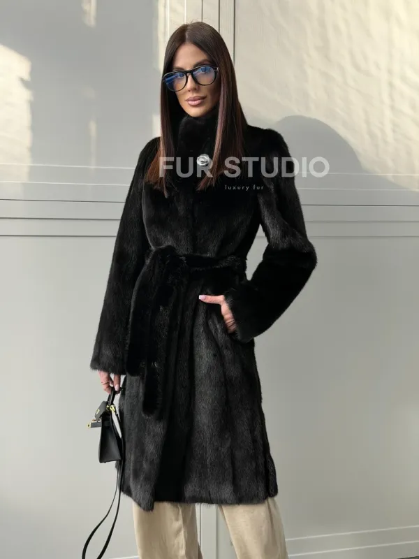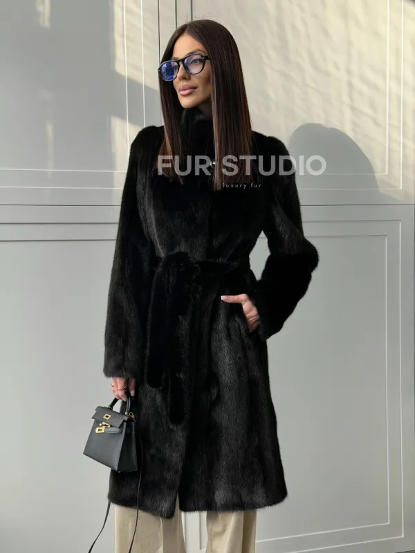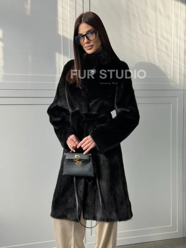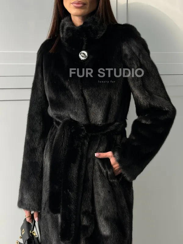 Черная норковая шуба - воротник стойка доступна для покупки в нашем шоуруме Furs Studio в . У нас так же есть доставка во все города России. Добавьте немного роскоши в свой гардероб с этой шубой, которая будет служить вам многие годы.