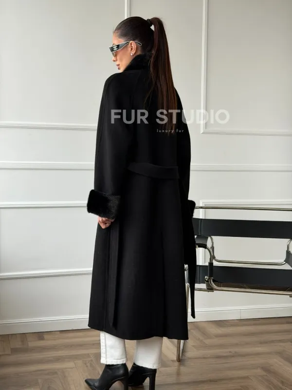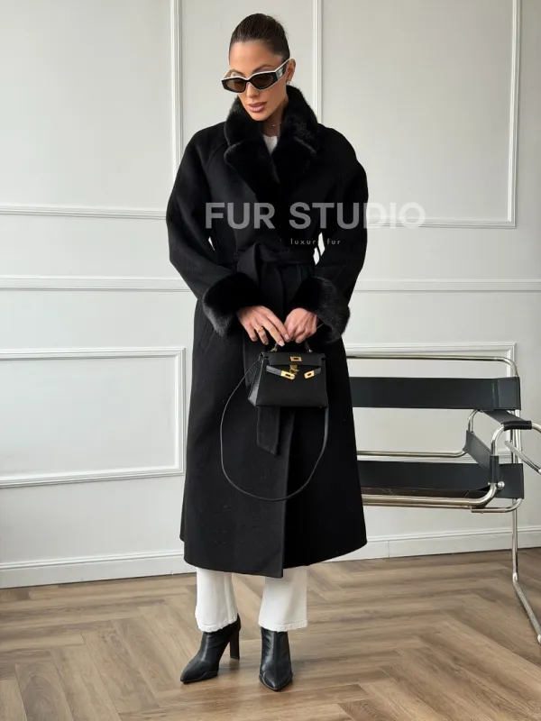 Черное пальто с мехом норки 102666