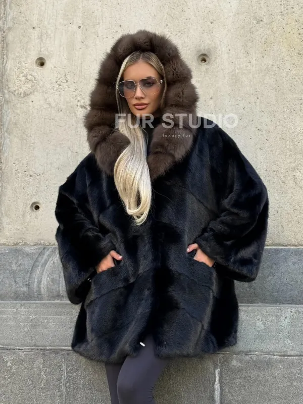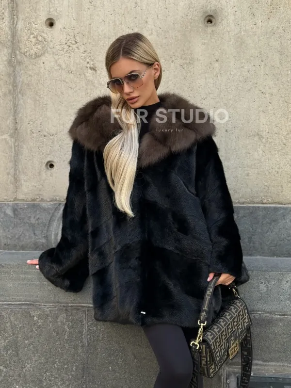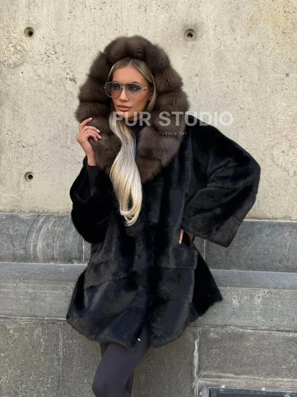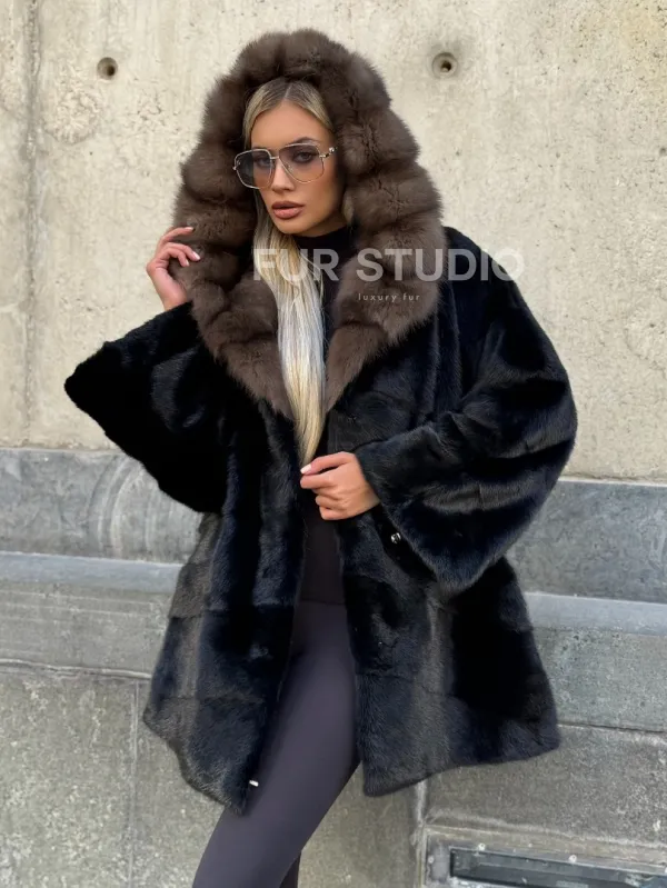 Черный норковый полушубок с капюшоном куница доступна для покупки в нашем шоуруме Furs Studio в . У нас так же есть доставка во все города России. Добавьте немного роскоши в свой гардероб с этой шубой, которая будет служить вам многие годы.