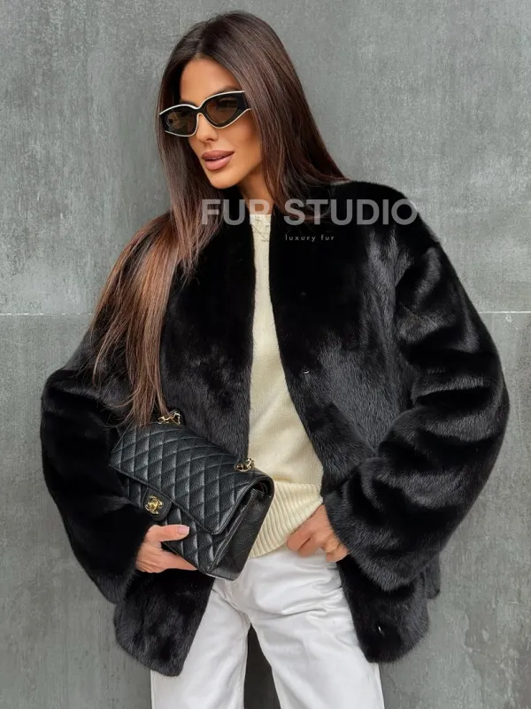 Черный норковый полушубок V-образный воротник доступна для покупки в нашем шоуруме Furs Studio в . У нас так же есть доставка во все города России. Добавьте немного роскоши в свой гардероб с этой шубой, которая будет служить вам многие годы.