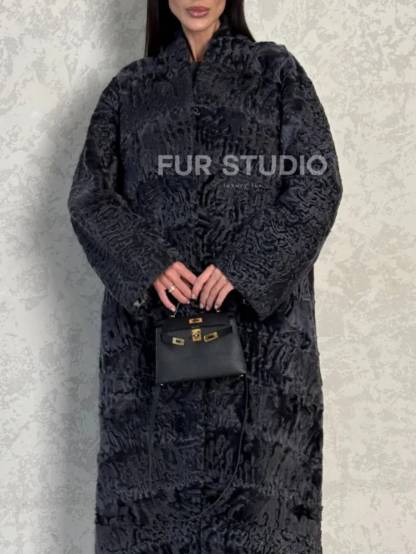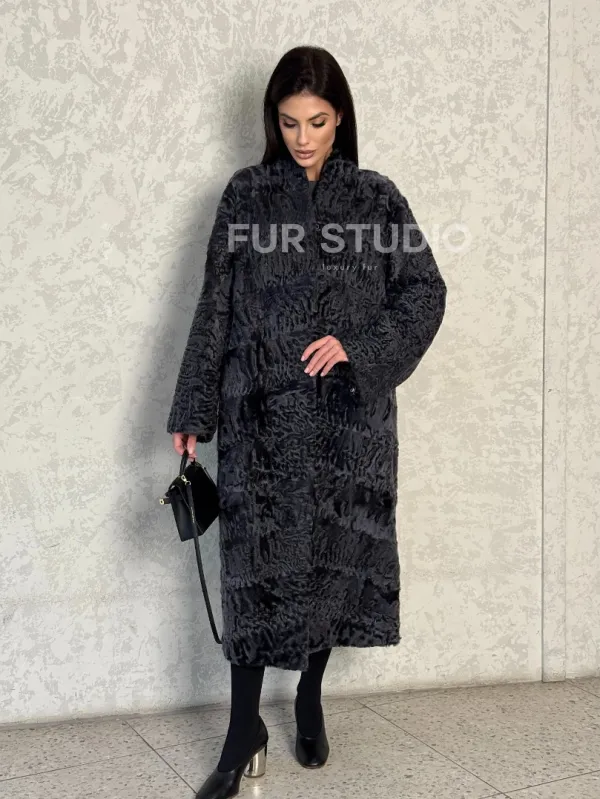 Длинная шуба из каракуля в цвете графит доступна для покупки в нашем шоуруме Furs Studio в . У нас так же есть доставка во все города России. Добавьте немного роскоши в свой гардероб с этой шубой, которая будет служить вам многие годы.