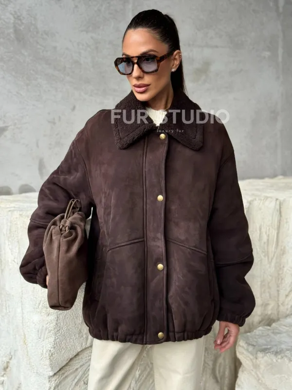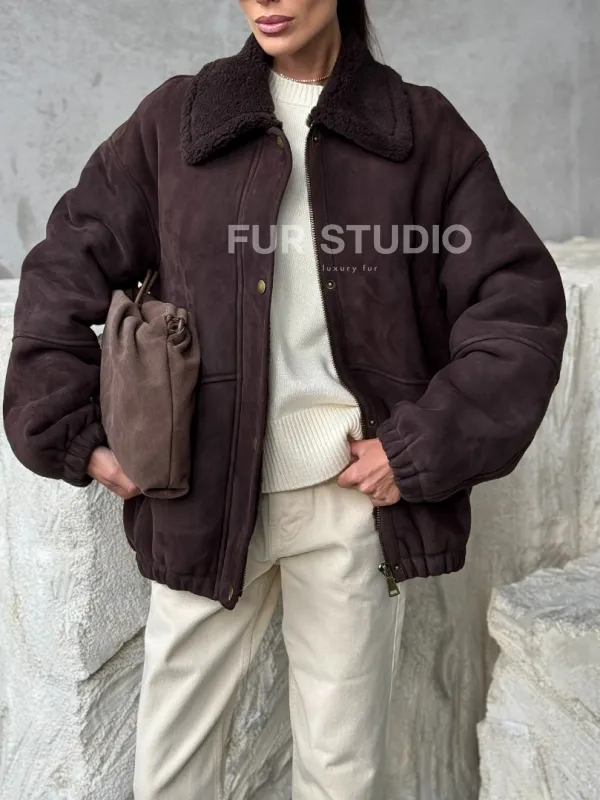 Дубленка бомбер женская 102378