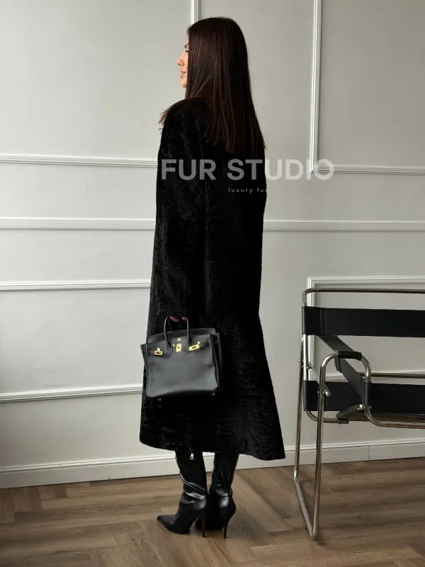 Дубленка из натуральной овчины астраган. Модель предлагается в размерах от 42 до 48. Оптимальная длина моделей 115-120 см подчеркивает линии вашей фигуры. Эта дубленка станет неотъемлемой частью гардероба для тех, кто предпочитает роскошь и утонченность натуральной кожи.