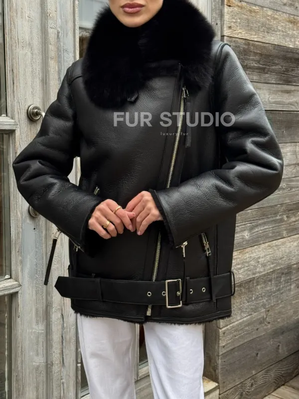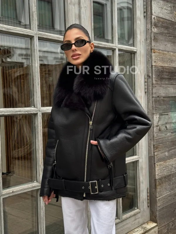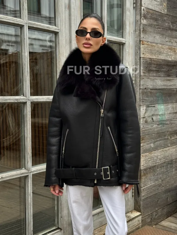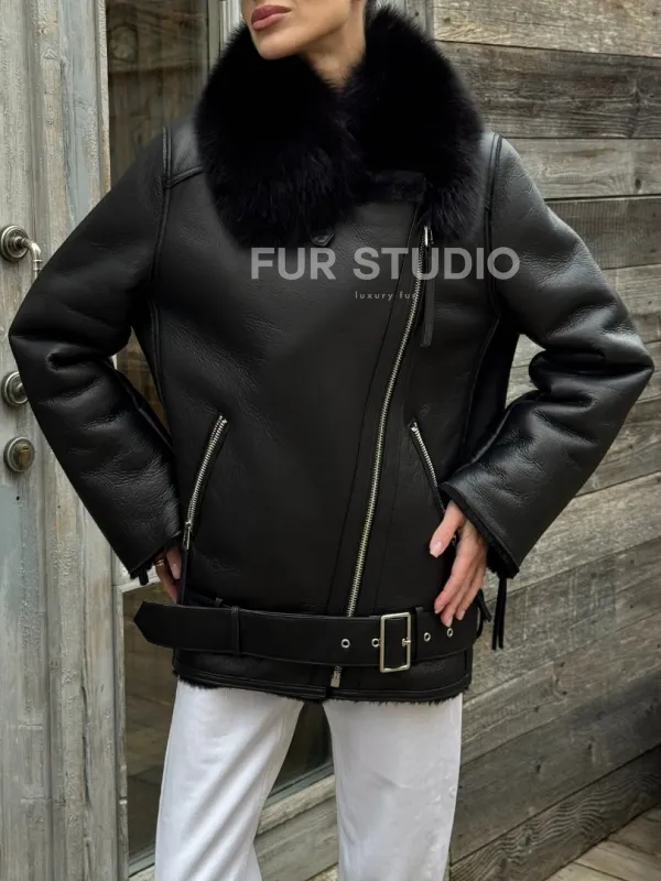 Дубленка из натуральной овчины с мехом песца 100679