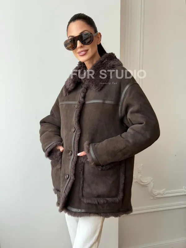 Двухсторонняя дубленка - мех тиградо 102734