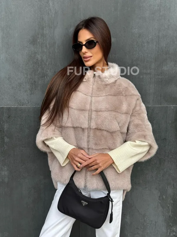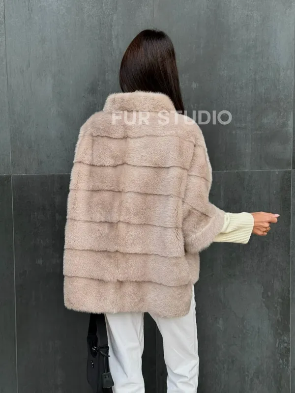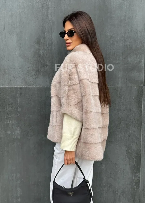 Мех данной шубы аукционная норка , цвет бежевый. Предлагается в размерах от 40 до 48 (oversize). Длина модели 60-65 см, что выгодно подчеркивает фигуру девушек. Эта модель идеально подойдет для девушек и женщин, предпочитающих роскошные натуральные меха.