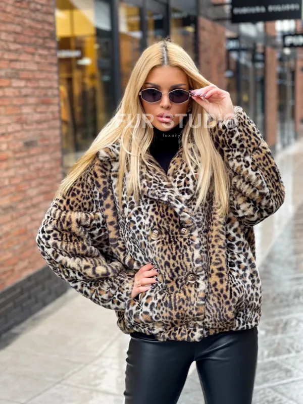 Короткая шуба под леопард из экомеха 100198