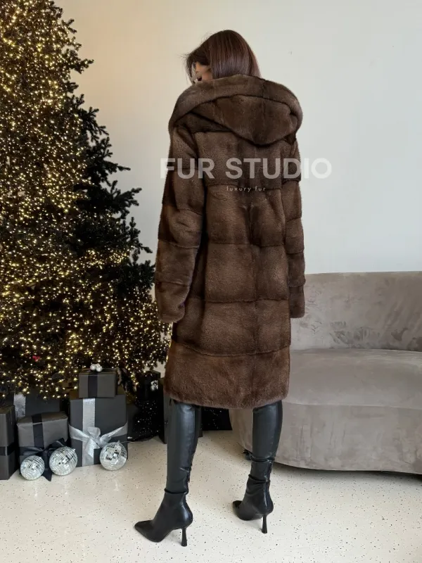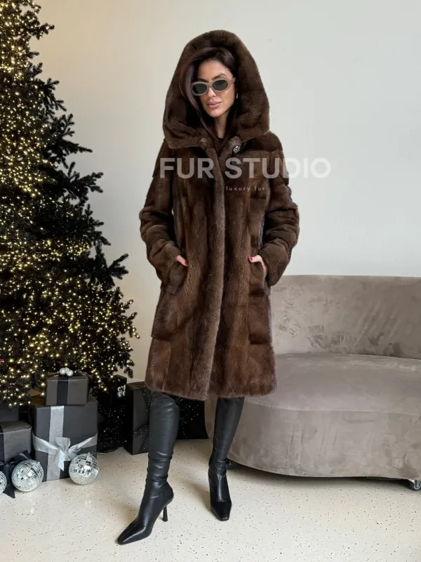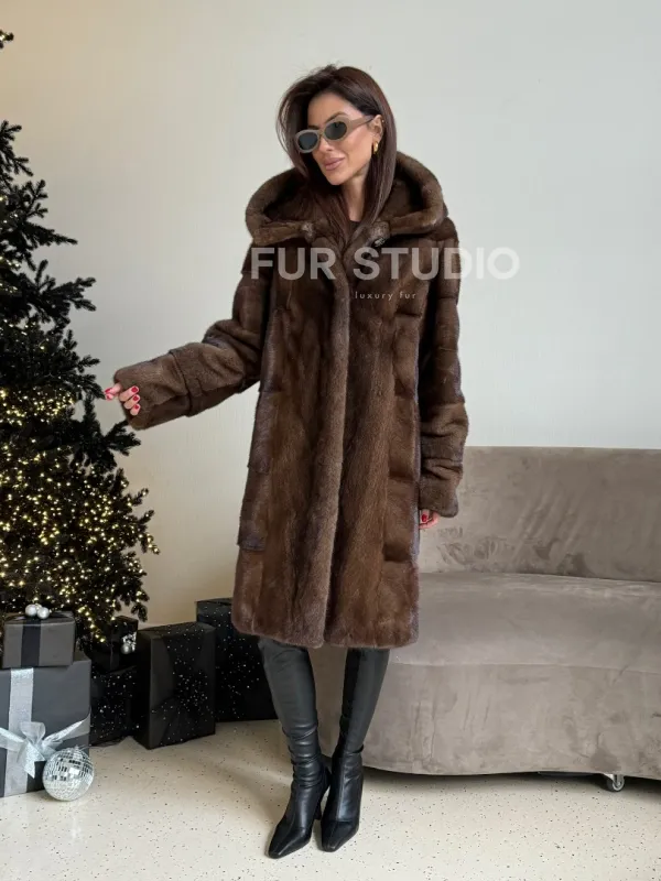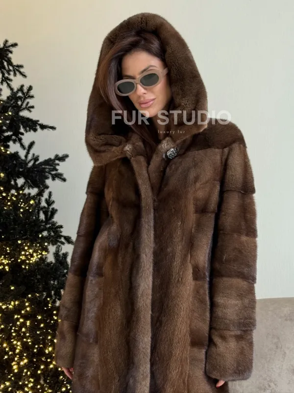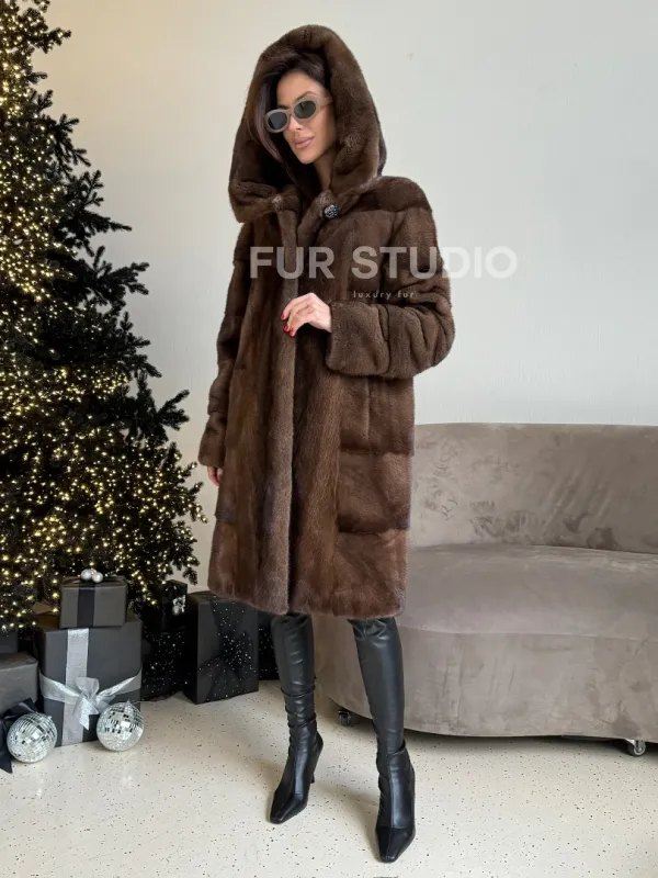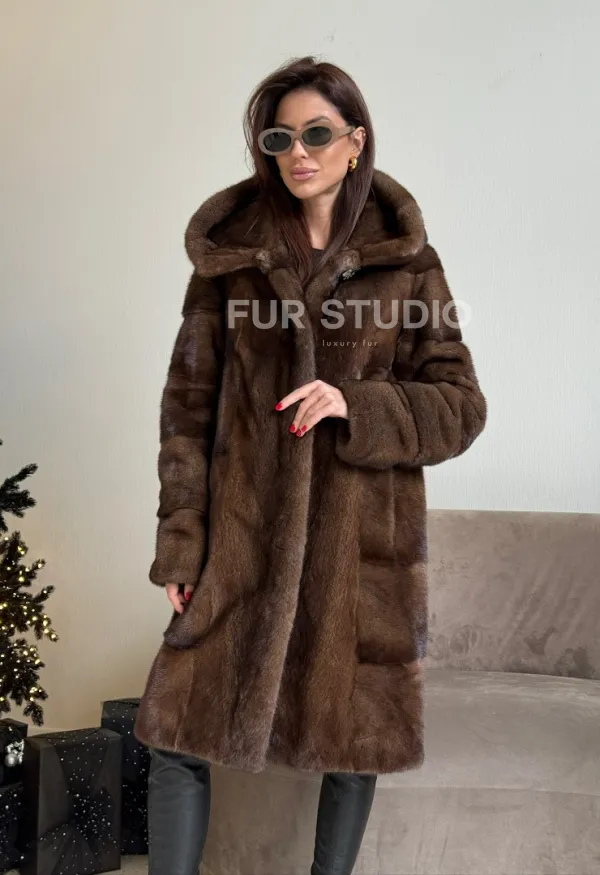 Норковая шуба с капюшоном в цвете орех доступна для покупки в нашем шоуруме Furs Studio в . У нас так же есть доставка во все города России. Добавьте немного роскоши в свой гардероб с этой шубой, которая будет служить вам многие годы.