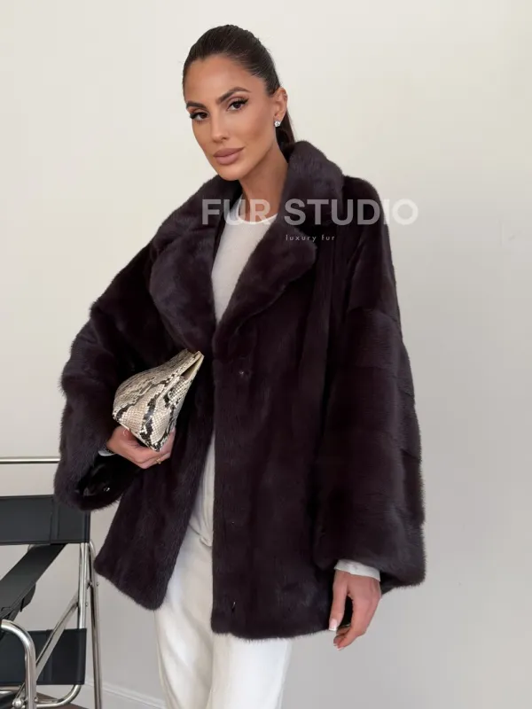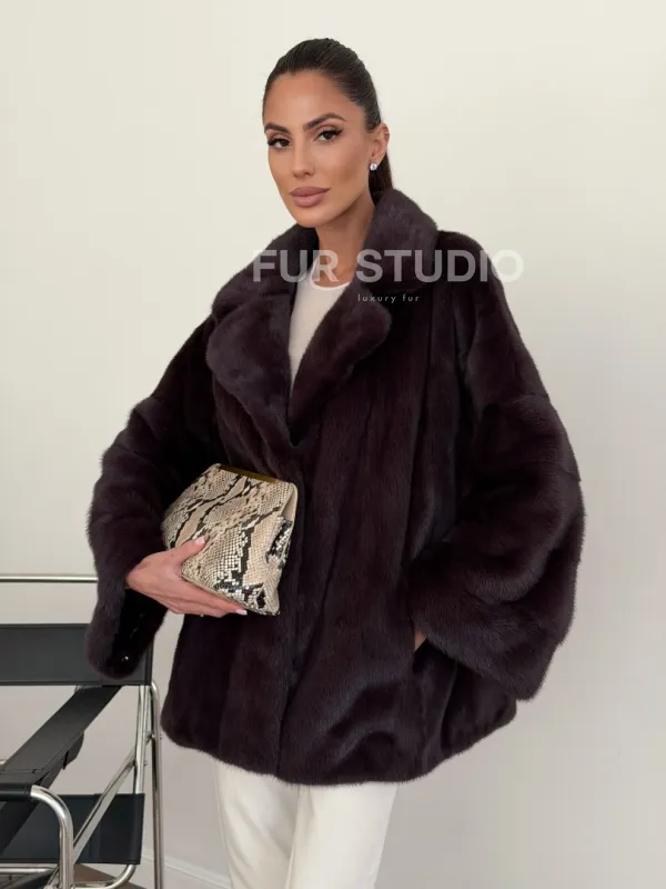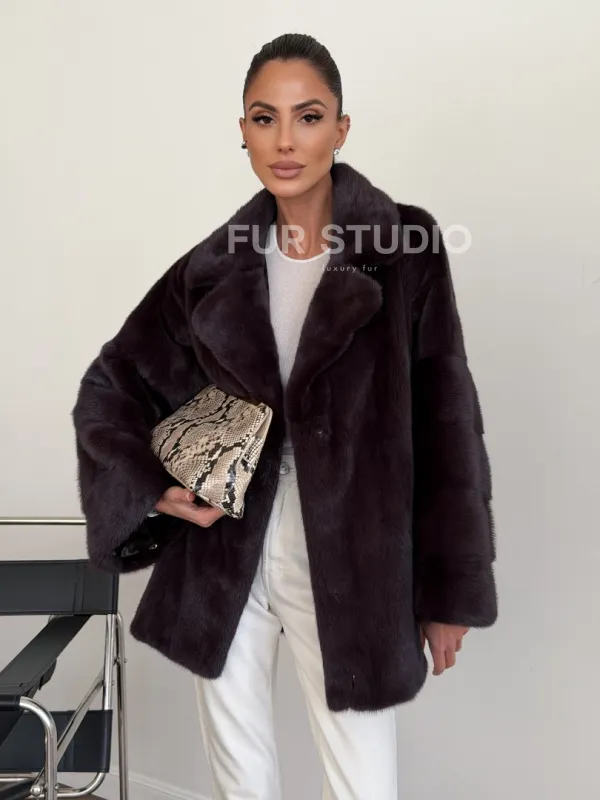 Норковый полушубок - цвет инжир 102634