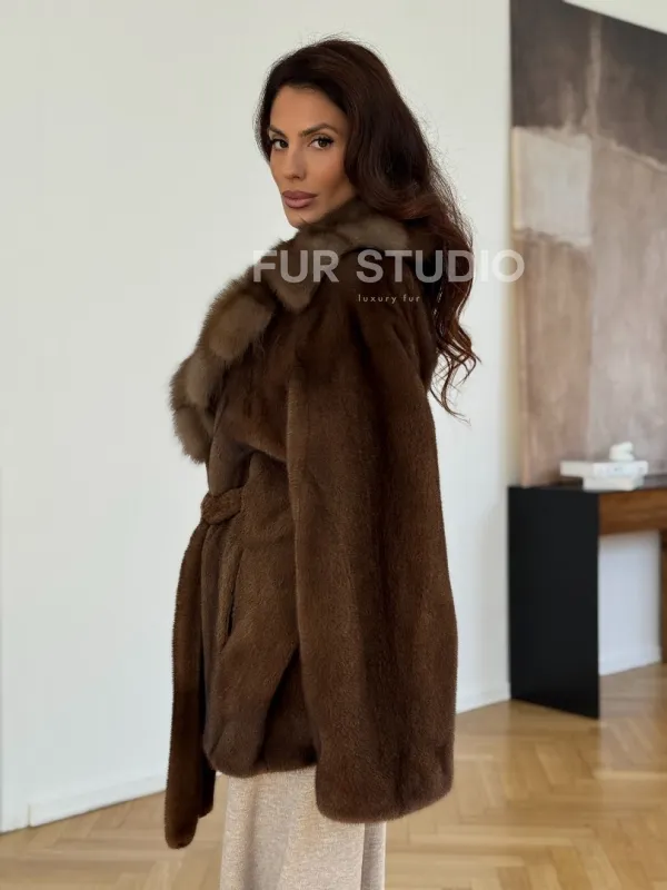 Норковый полушубок - цвет соболь 102319