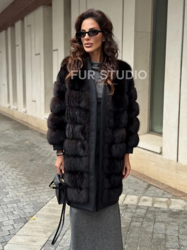 Пальто из куницы с отделкой кашемира 102304