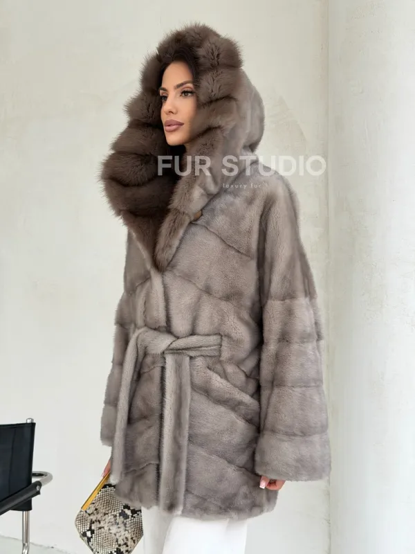 Серый норковый полушубок - капюшон куница доступна для покупки в нашем шоуруме Furs Studio в . У нас так же есть доставка во все города России. Добавьте немного роскоши в свой гардероб с этой шубой, которая будет служить вам многие годы.