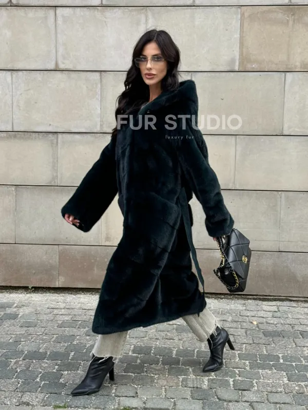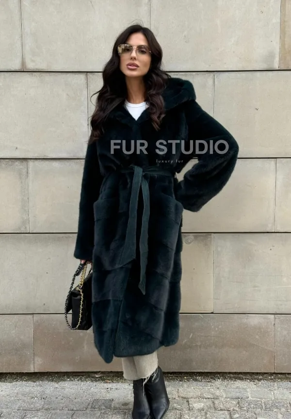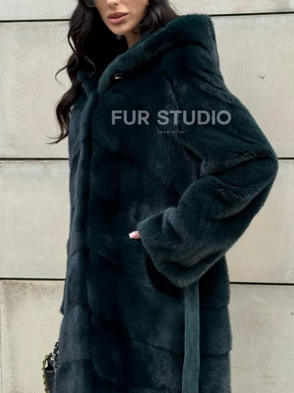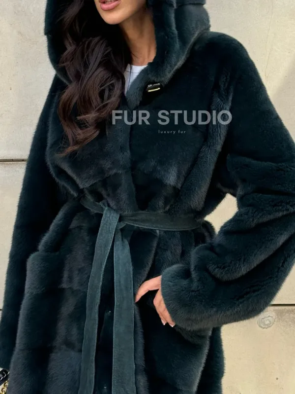 Шуба из аукционной норки NAFA с капюшоном 101020