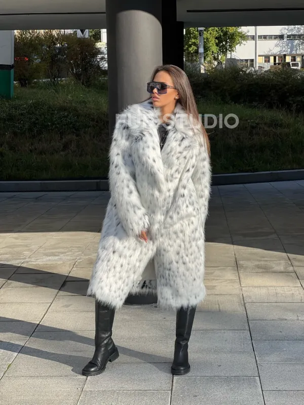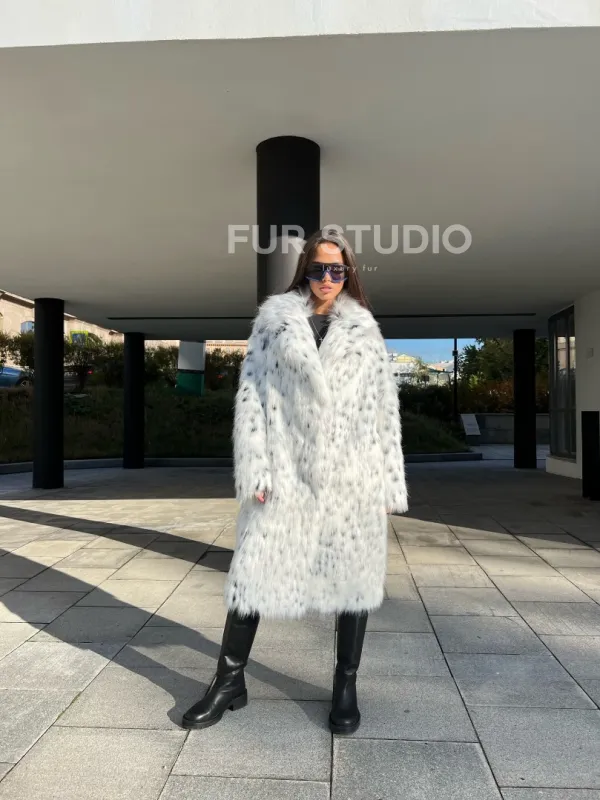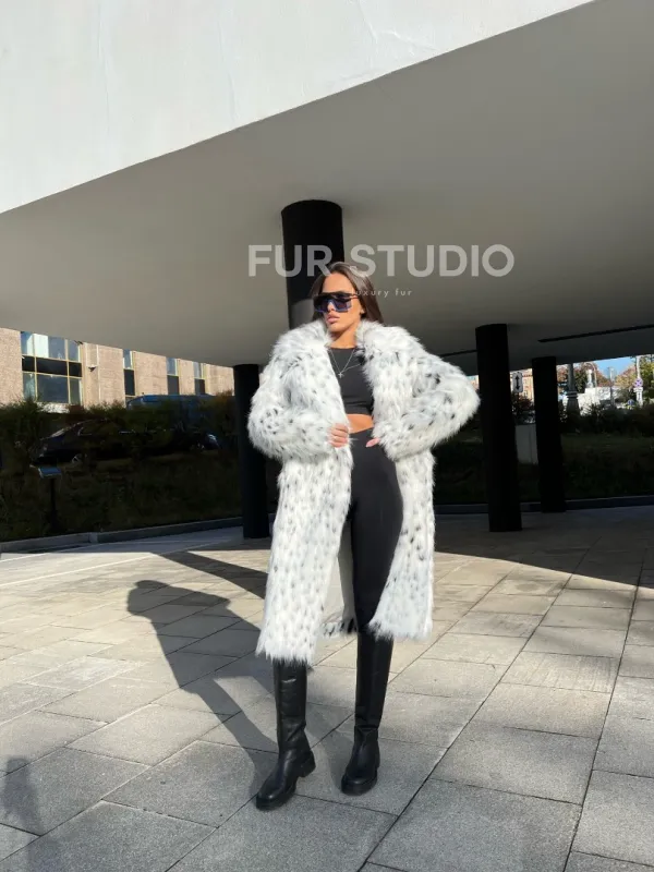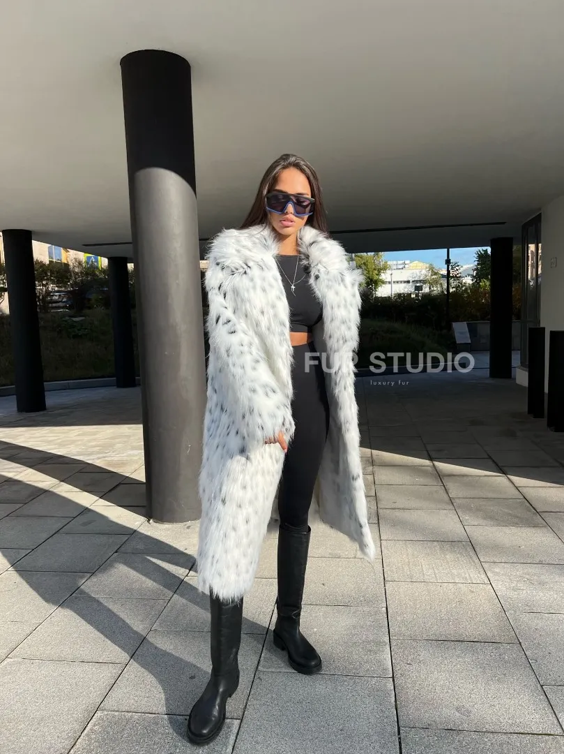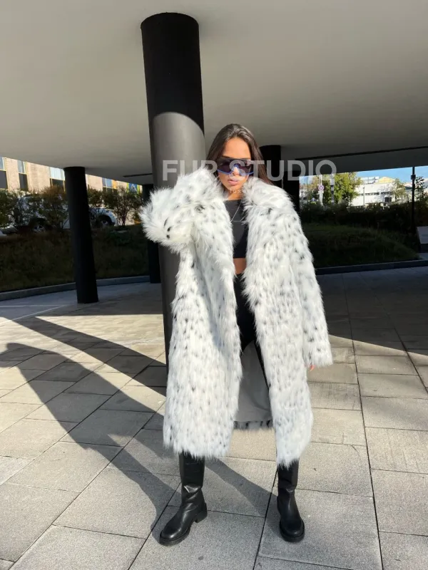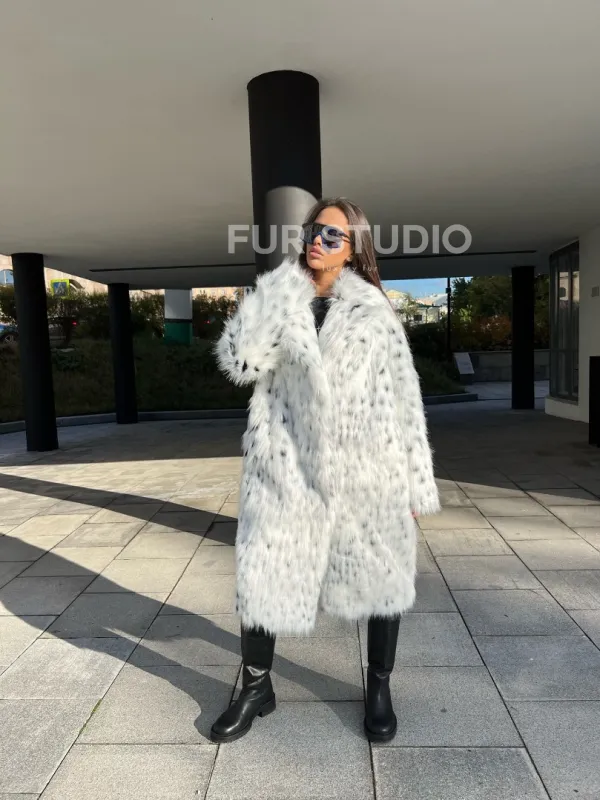 Оригинальный воротник позаботится о тепле шеи в холода и подчеркнет ее изгибы. Широкие рукава делают акцент на изяществе кистей. Модель сочетается с базовым гардеробом, подойдет под вечерний наряд. Добавьте к образу брендовую сумочку и стильную обувь – вы будете выглядеть стильно и лаконично. Купить шубу из экомеха под рысь могут все, кто мечтает о меховом изделии в своем гардеробе.