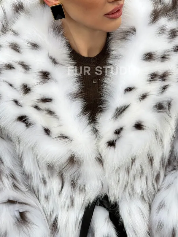 Шуба из лисьего меха под рысь с капюшоном 102680
