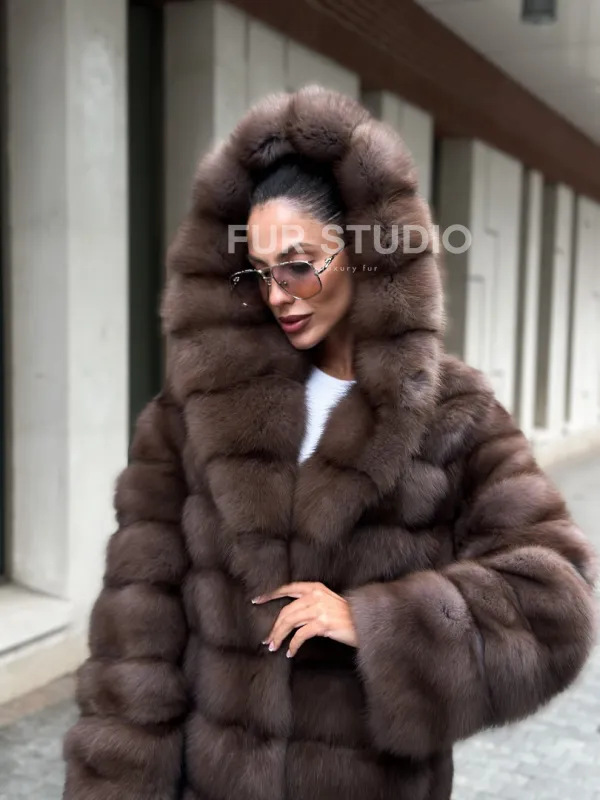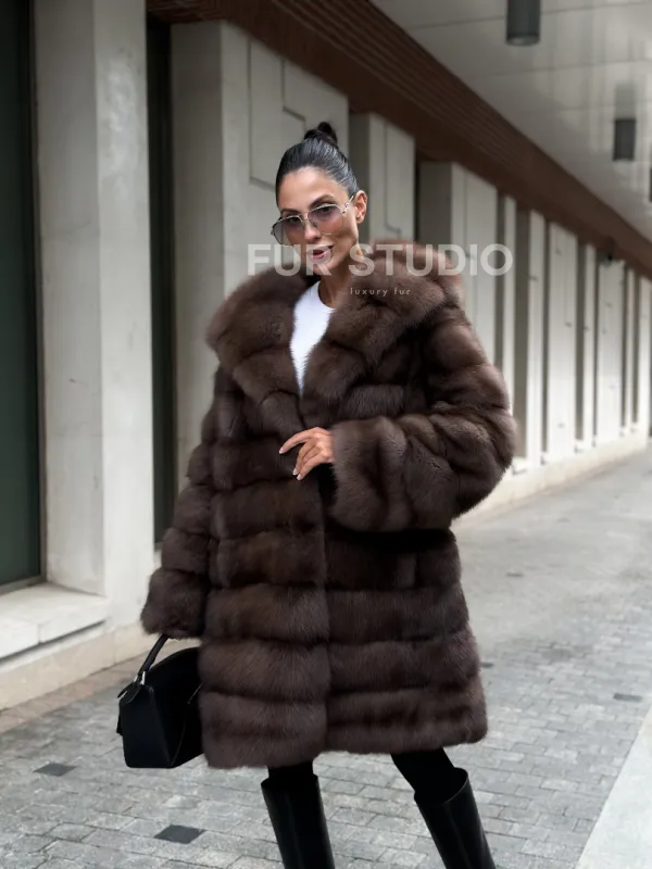 Шуба из меха куницы с капюшоном цвет трюфель доступна для покупки в нашем шоуруме Furs Studio в . У нас так же есть доставка во все города России. Добавьте немного роскоши в свой гардероб с этой шубой, которая будет служить вам многие годы.
