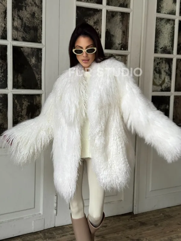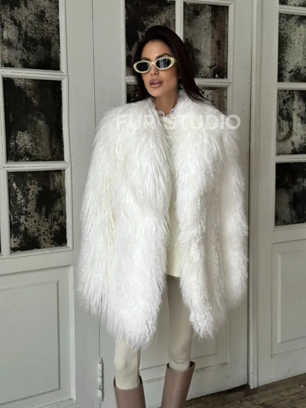 Мех данной шубы лама, цвет белый. Предлагается в размерах от 42 до 52. Длина модели 75-80 см, что выгодно подчеркивает фигуру девушек. Эта модель идеально подойдет для девушек и женщин, предпочитающих роскошные натуральные меха.