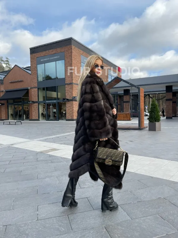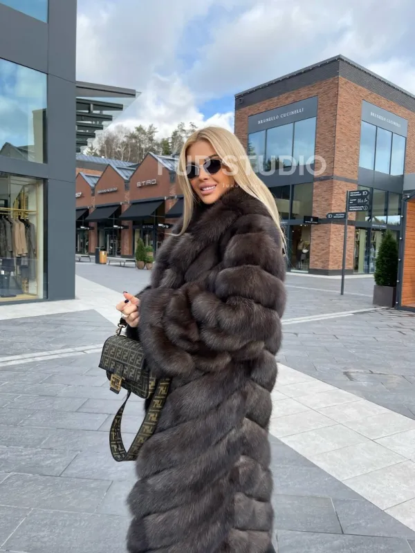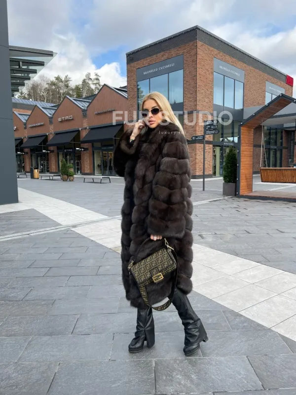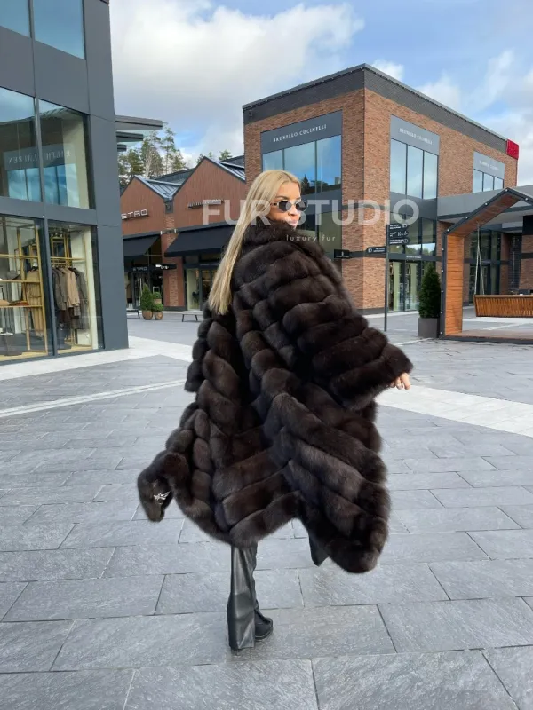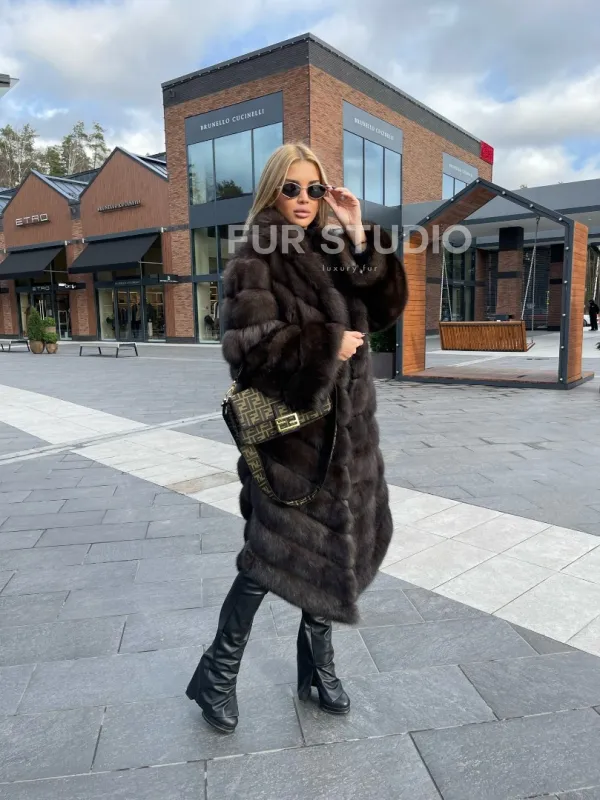Воротник шаль согреет шею в непогоду и подчеркнет ее изгибы. Широкие рукава делают акцент на тонкости кистей. Изделие отлично сочетается с классикой, стилем casual, подойдет под вечерний look. В модели вы будете выглядеть дорого и лаконично. Купить шубу из меха соболя воротник шаль – стоящее вложение в себя, в такой верхней одежде вы постоянно будете ловить восхищенные взгляды.
