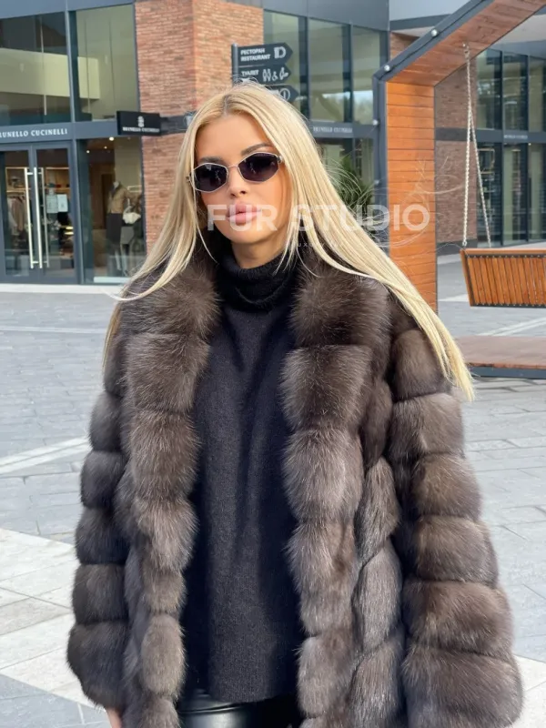 Шуба из меха соболя, воротник шаль 100126