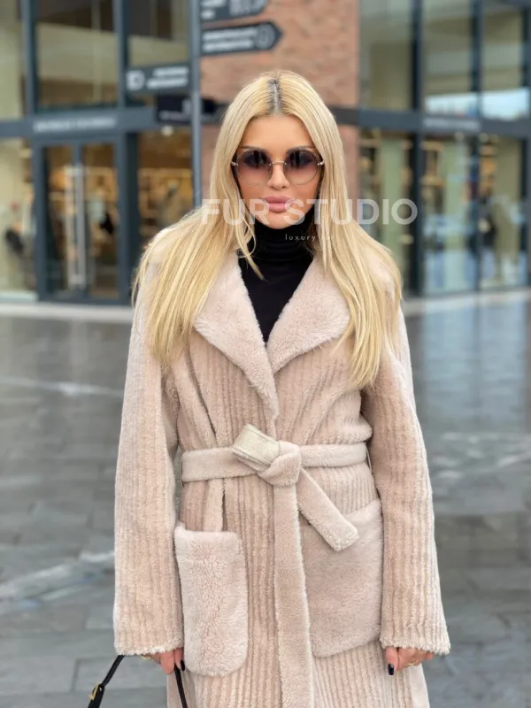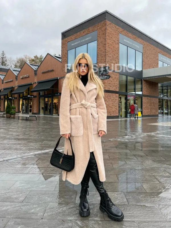 Шуба из натуральной шерсти в бежевом оттенке 100192