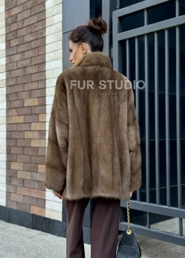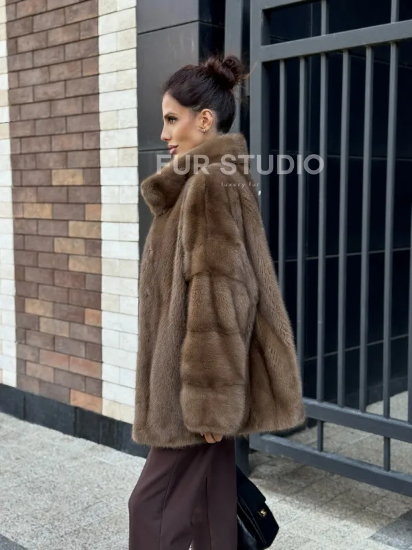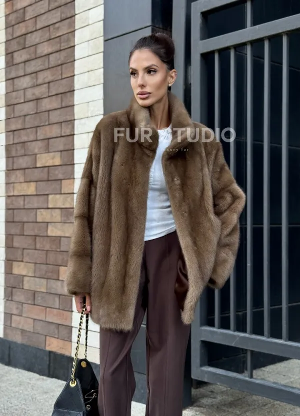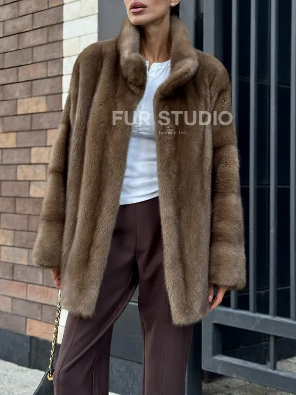Шуба норковая пастель - стойка воротник 102235