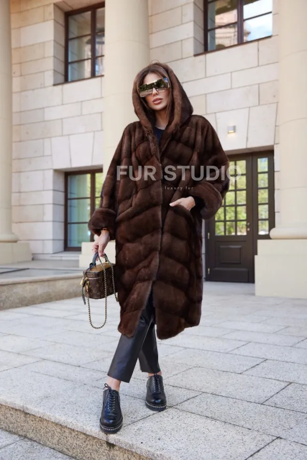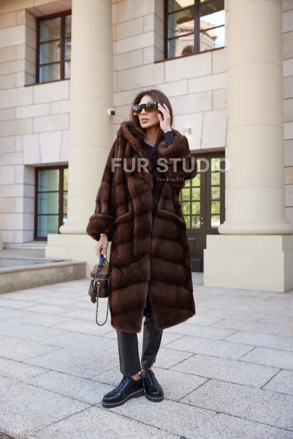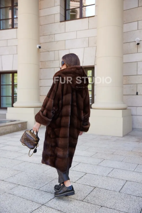 Шуба норковая с капюшоном - цвет соболь 100235