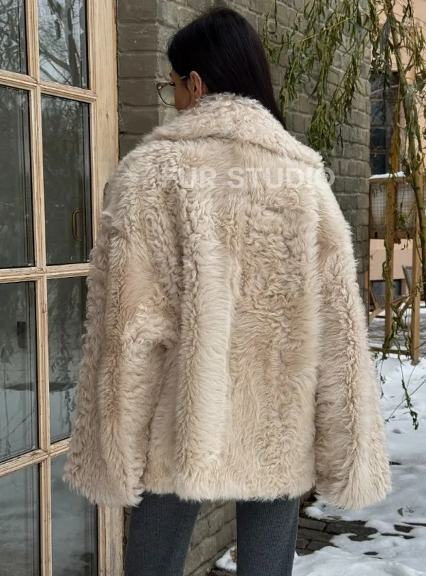 Светлая короткая шуба из испанской овчины 101438