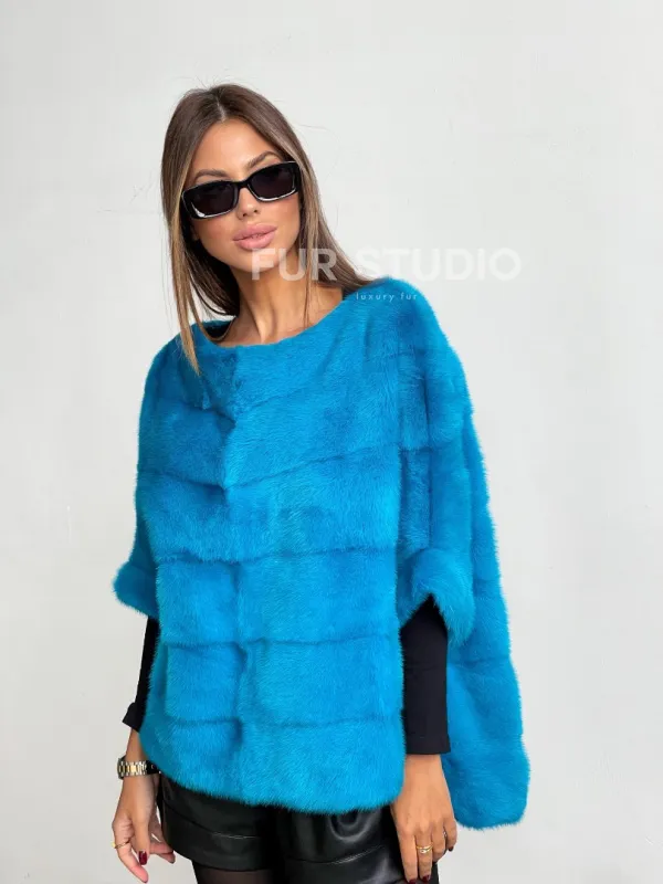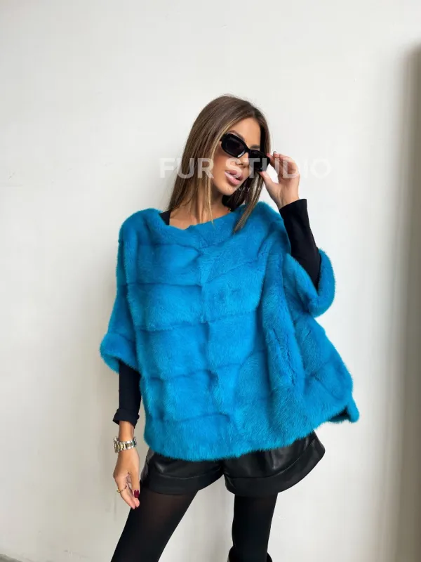 Свитер из меха норки в цвете лагуна 100096