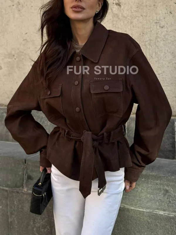 Восхититесь элегантностью и несравненным комфортом с нашей эксклюзивной коллекцией кожаных изделий. Изготовленная из первоклассной натуральной кожи, Женская куртка - рубашка из замши не только согреет вас в прохладные дни, но и подчеркнет ваш изысканный вкус. Уникальный дизайн и высокое качество делают наши представленные образцы идеальным выбором для утончённых образов.