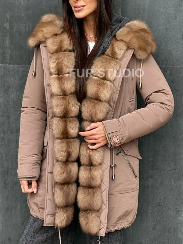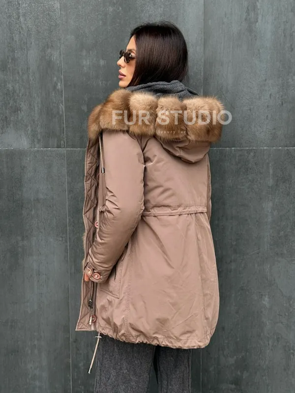 Женский пуховик с мехом куницы 102412