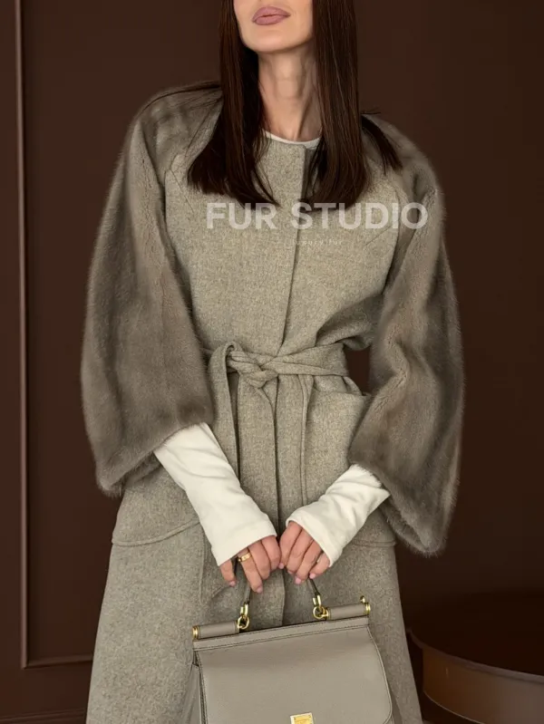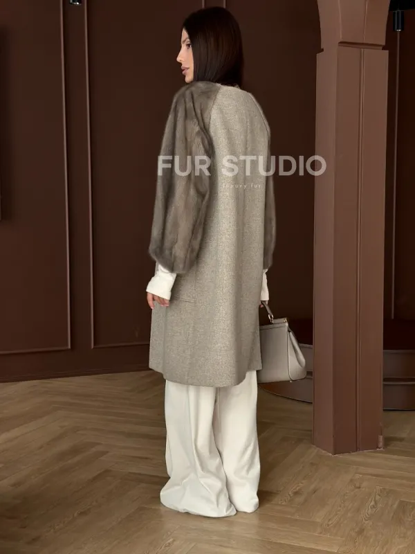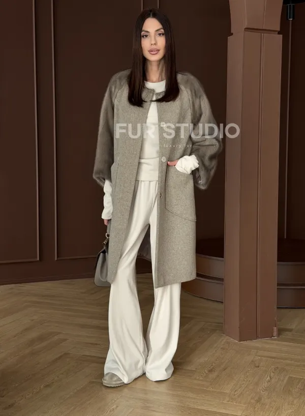 Женское пальто с меховыми рукавами из норки 102910
